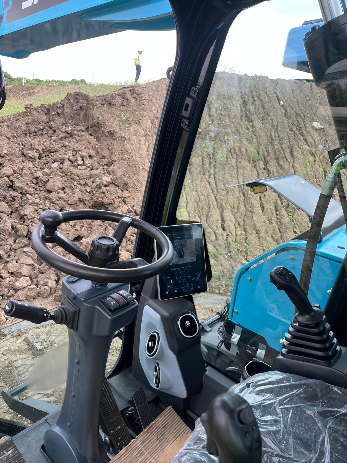 De cabine van de SANY SY175EW is ontworpen met het oog op comfort en gebruiksgemak. De luchtgeveerde stoel, climate control en ergonomische bediening zorgen voor een prettige werkomgeving. Het 360° camerasysteem geeft je volledig zicht rondom de machine, wat de veiligheid aanzienlijk verhoogt. Extra voorzieningen zoals een koelbox en verstelbare stuurkolom maken lange werkdagen comfortabeler en productiever.