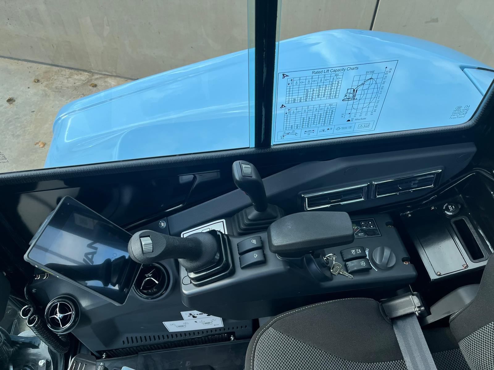 De cabine van de SANY SY35E is ontworpen met oog voor comfort en gebruiksgemak. De geveerde stoel, airconditioning en ergonomische bediening zorgen ervoor dat je langdurig comfortabel kunt werken. Het overzichtelijke kleurenscherm en praktische functies zoals een USB-aansluiting en bekerhouder maken het werken nog aangenamer. Dankzij de trillingsdemping ervaar je minder belasting, wat bijdraagt aan een hogere productiviteit.