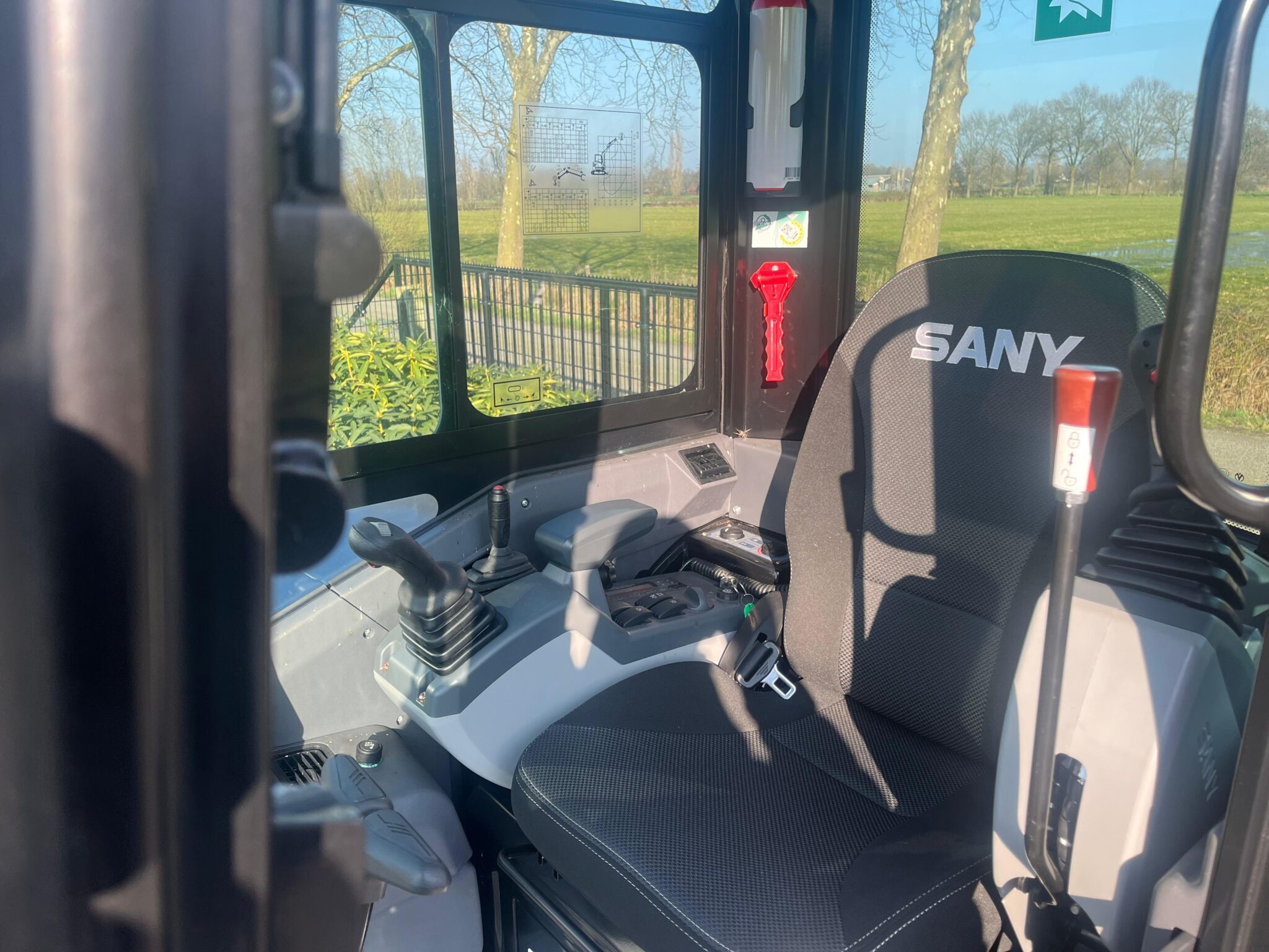 De cabine van de SANY SY60C is ontworpen voor comfort tijdens lange werkdagen. Dankzij airconditioning, verwarming en een ergonomische werkplek werk je onder alle omstandigheden prettig. De cabine is gemonteerd op trillingsdempers, wat zorgt voor minder vermoeidheid. Met een geveerde stoel, duidelijke monitor en radio met bluetooth geniet je van een comfortabele en productieve werkomgeving.